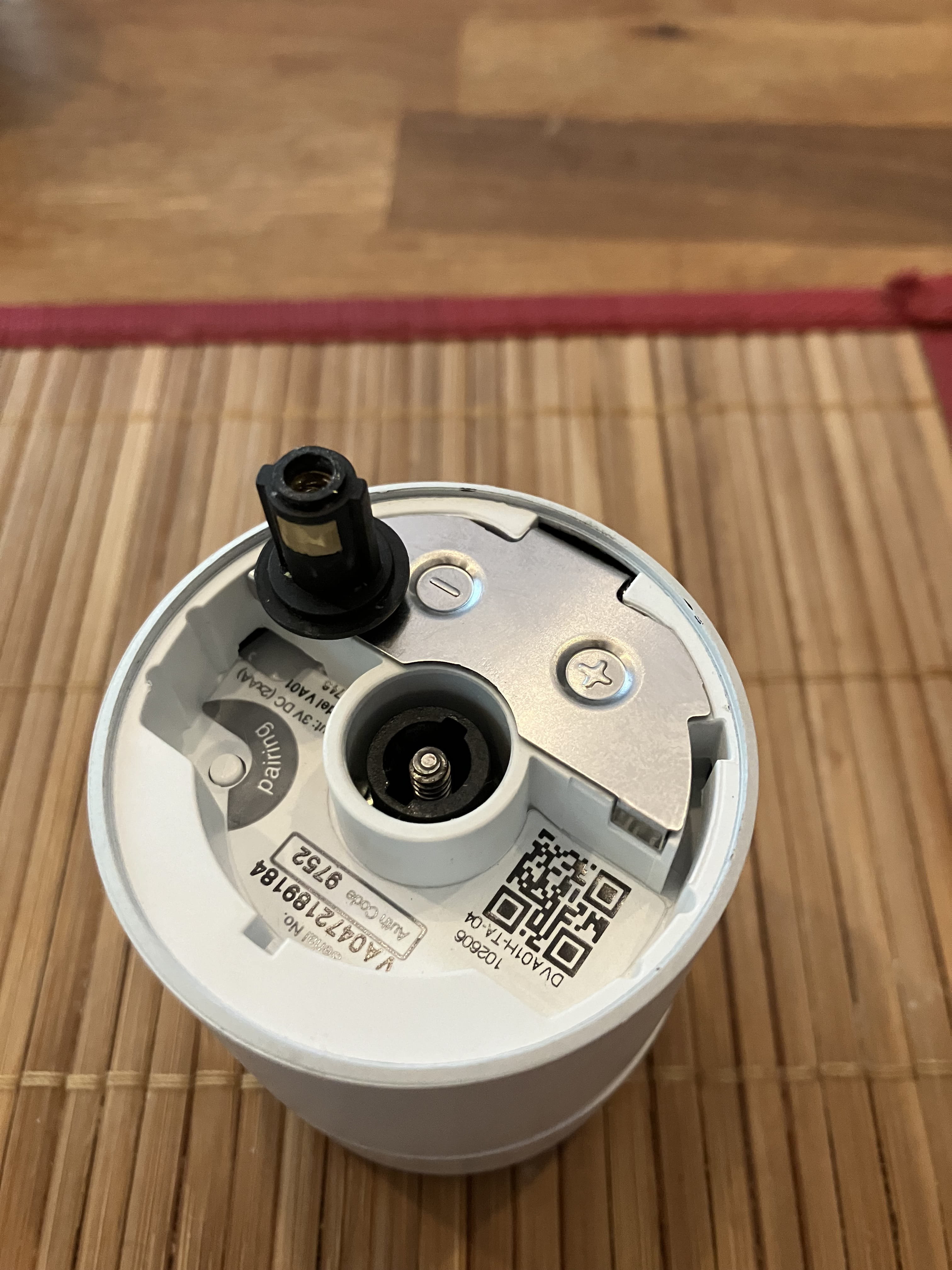 Ce problème concerne une tête de thermostat intelligent Tado modèle VA01. J'ai détaché la tête du radiateur et la petite pièce qui fait le lien entre le récepteur du radiateur et la tête est tombée. Je n'arrive plus à l'enfoncer dans sa position d'origine. La pièce devrait être enfoncée vers l'intérieur en glissant dans deux rails, mais une vis (trop en haut) l'empêche.
