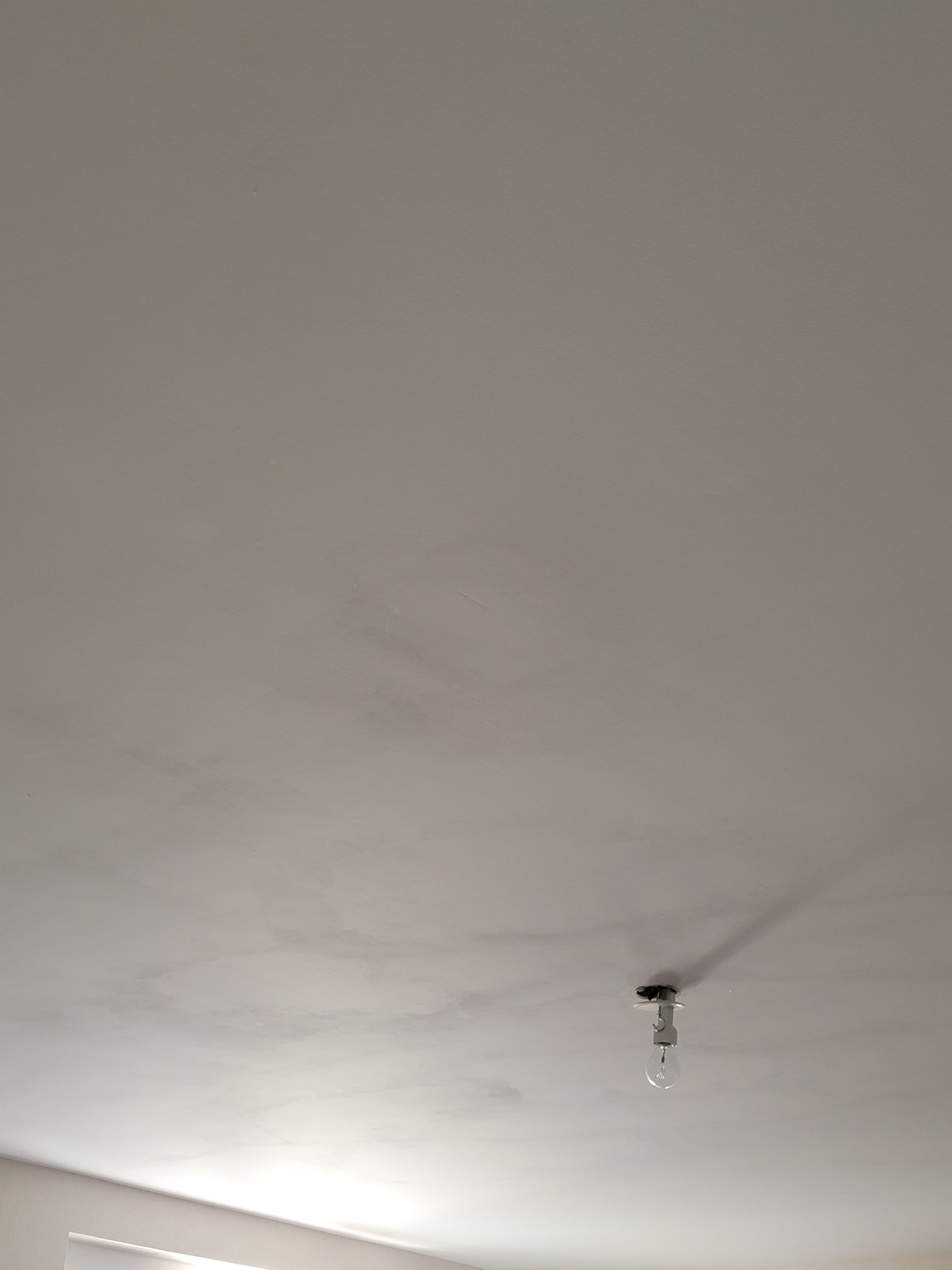 Puis jai regarder d'un peu plus pres le plafond de mon salon. Et j'ai remarqué ses taches que je vous met en photos. Il n'y a pas de moississure apparente, pas d'humidité au touché. Donc je voulais savoir si il y avait un potentiel de moisissure dans le plafond ou ça n'a rien avoir ?