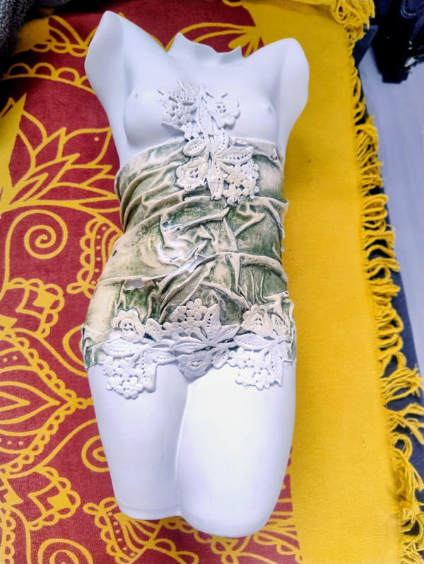 J’ai en ma possession une sculpture en plâtre d’environ 40 cm de haut représentant le buste stylisé d’une femme, dont la forme évoque celle d’un vase. La sculpture date du début des années 1990.